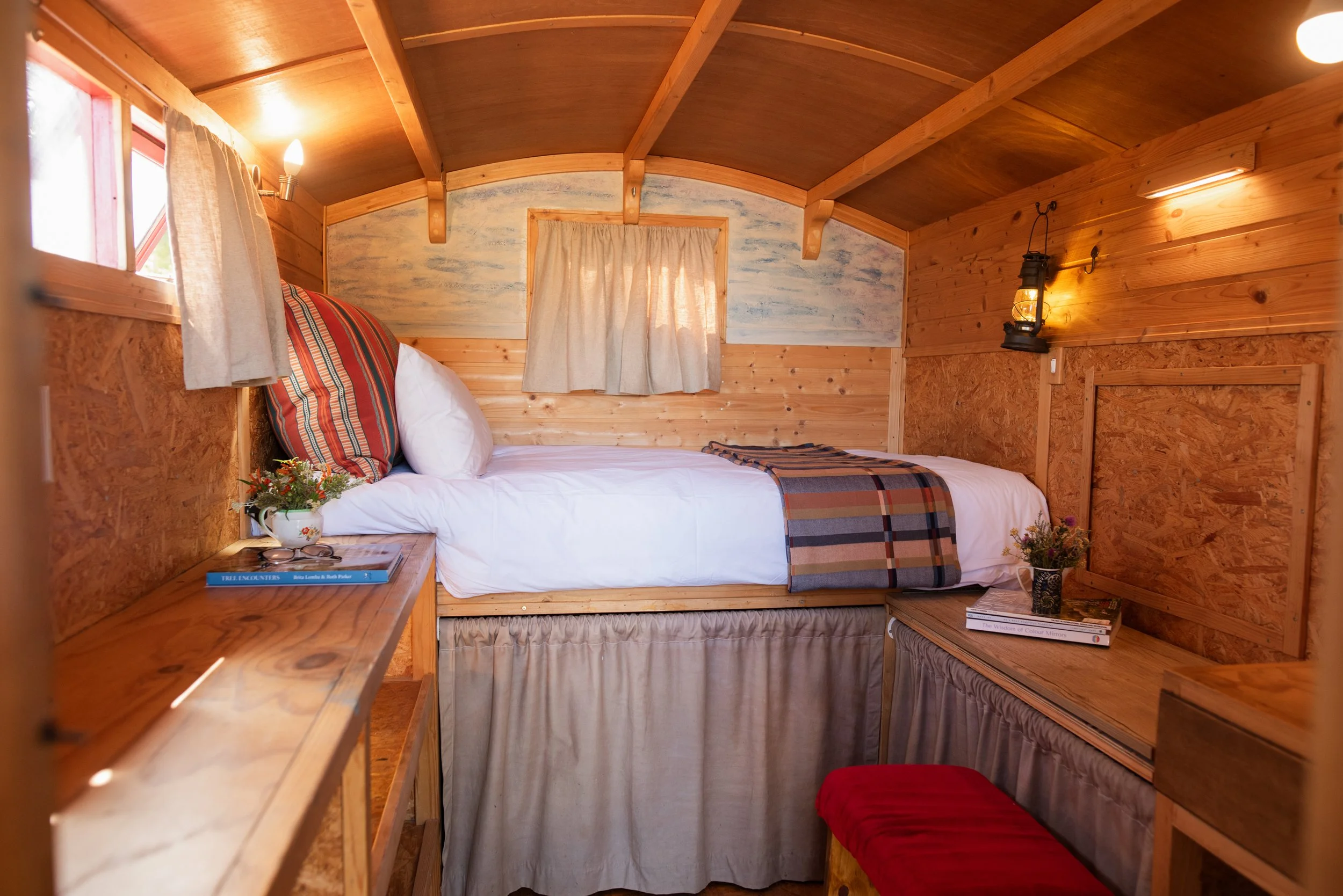 Settled into the ancient forest clearings are our cosy trailer homes. All meals are included with trailer home stays and can sleep doubles or singles. The trailer homes have access to communal bathrooms in the main workshop area and are well-lit and spaced out for privacy.